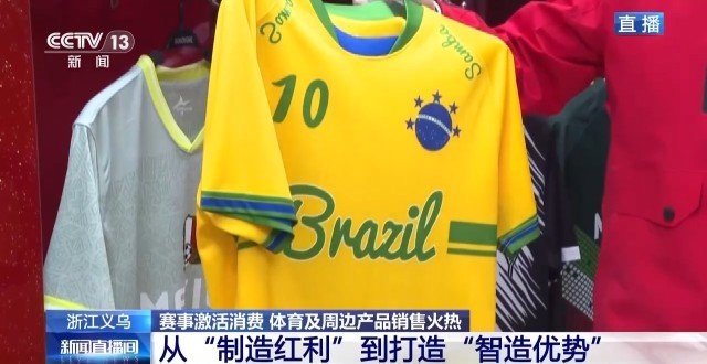 在义乌国际商贸城三区的体育用品专区,有一家主营足球球迷服的商户,四年前的卡塔尔世界杯,当时,这家店的老板通过观察各个参赛队球迷服的订单走势,特别是赛前的追单情况,成功预测了阿根廷队会夺冠。体育经济和义乌市场之间,就这样有了一次特别巧妙的联动。